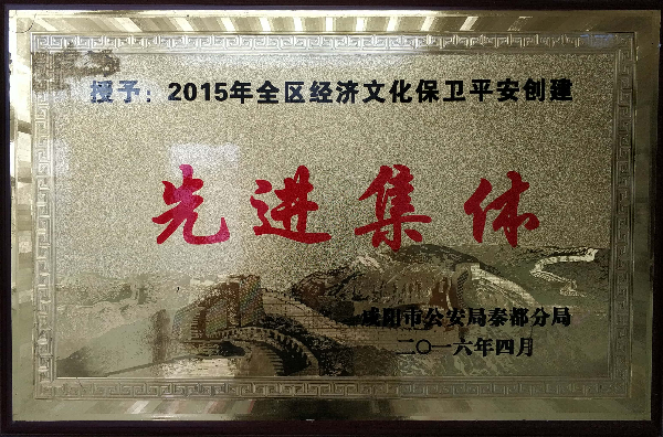 2015年咸陽市秦都區(qū)經(jīng)濟文化保衛(wèi)平安創(chuàng)建先進集體